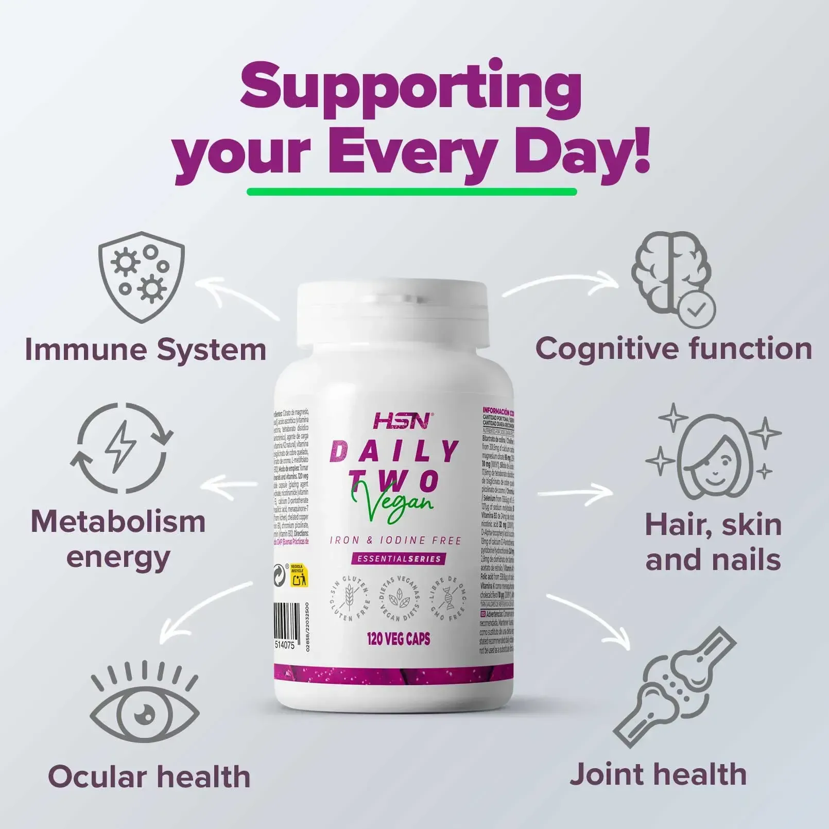 Tam, kad pasiektumėte optimalių rezultatų, rekomenduojame HSN Multivitaminus įtraukti į savo kasdienę rutiną kaip Pamatinio rinkinio dalį.