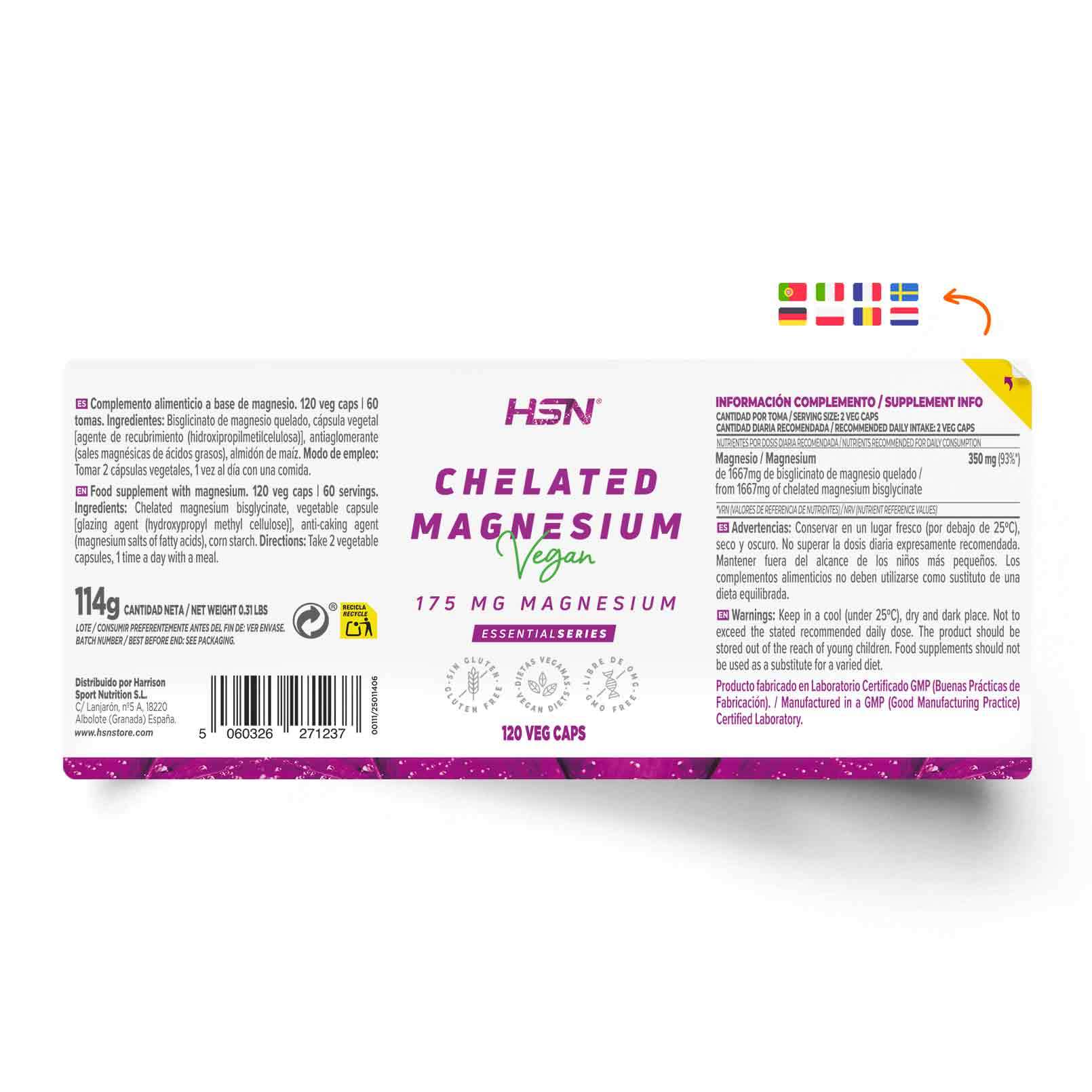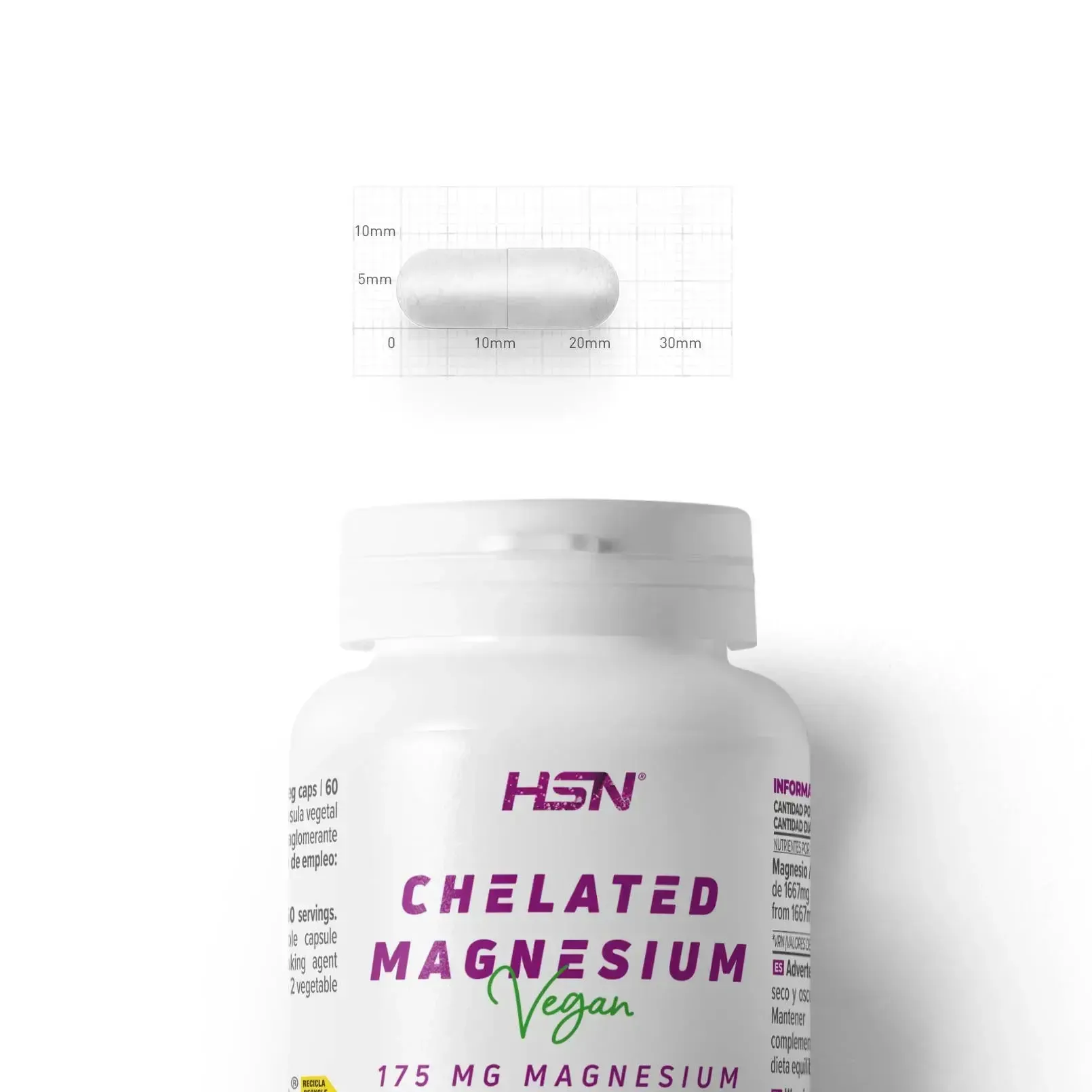 HSN Magnio Bisglicinato kapsulės gaminamos iš augalinės kilmės celiuliozės, be želatinos ir kitų gyvūninės kilmės ingredientų. Papildas tinka veganams ir vegetarams, taip pat neturi glitimo, GMO ar dirbtinių priedų.