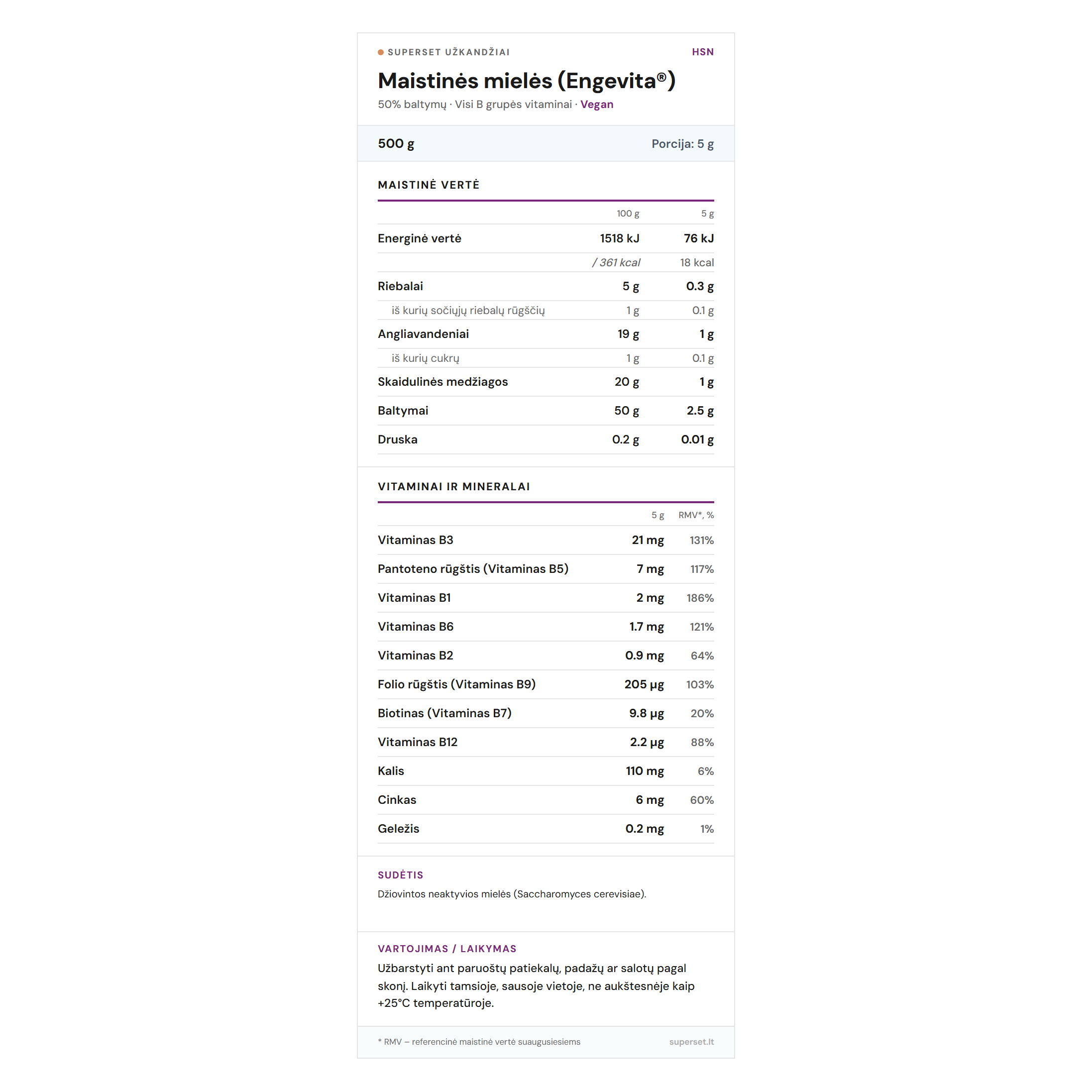 • Visos 8 B grupės vitaminų formos vienoje porcijoje – įskaitant B12, kurio augaliniame maiste paprastai nėra