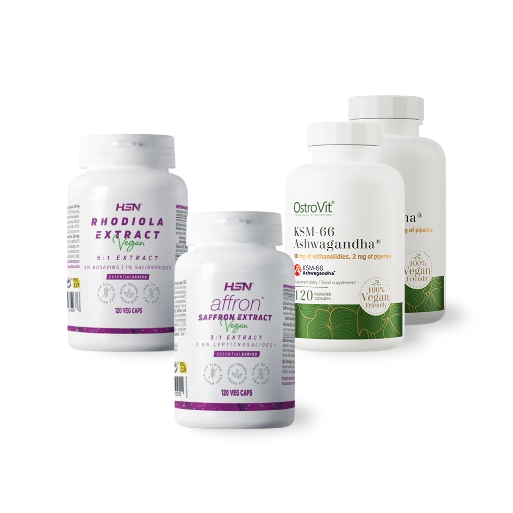 Sinergija, o ne Konkurencija: Rinkinio komponentai papildo, o ne dubliuoja vienas kitą. Ašvaganda veikia kaip ilgalaikis adaptogenas, stiprinantis nervų sistemą, Rodiolė suteikia greitesnį poveikį esant ūmiam nuovargiui, o Šafranas tiesiogiai įtakoja nuotaiką.
